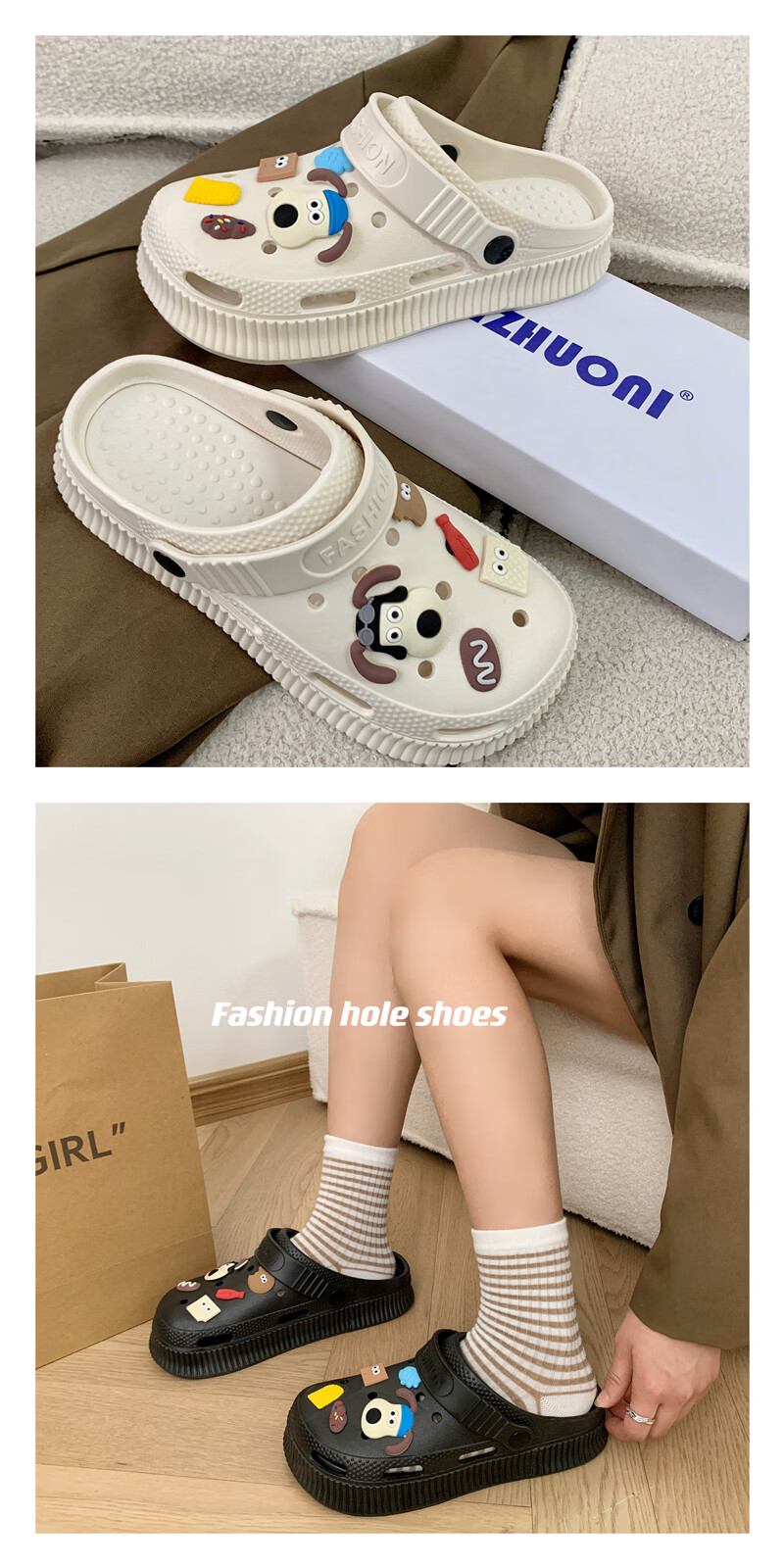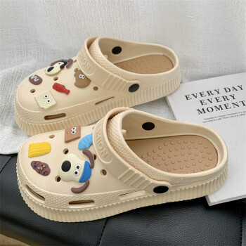 她享厚底增高洞洞鞋女外穿防滑松糕高跟包头拖鞋 TD905 咖色 38/39