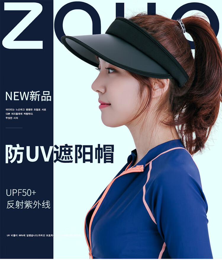 zauo防晒帽女遮阳帽空顶大帽檐防紫外线 经典款黑色
