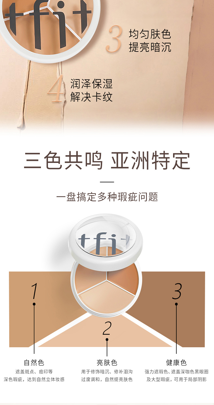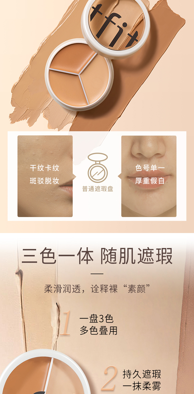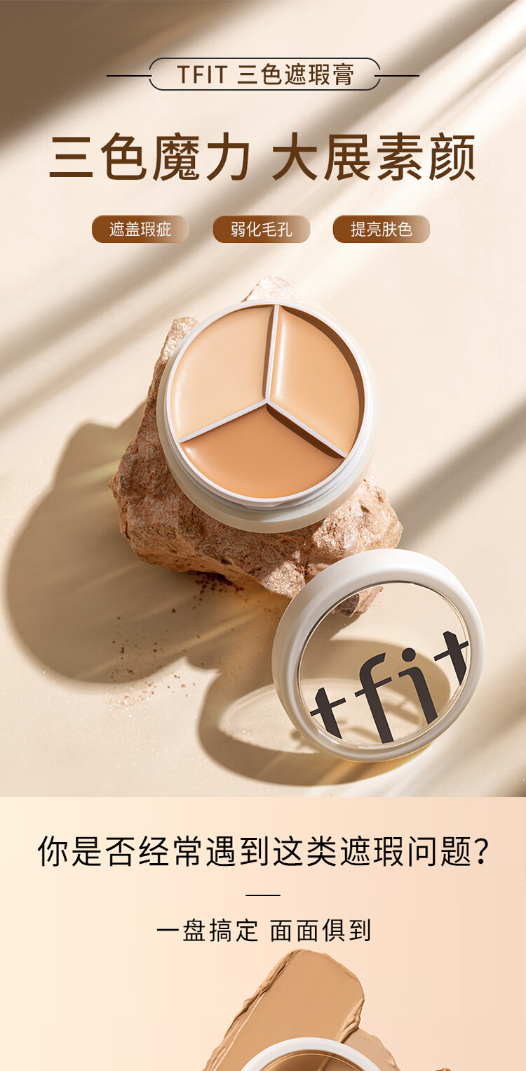 Tfit三色遮瑕膏遮暇盘遮脸部斑点痘印痘痘服帖自然裸妆化妆师专用15g