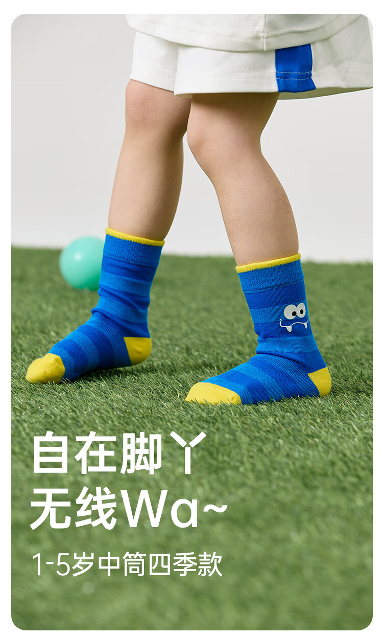 全棉时代婴儿袜子薄款男女童棉袜透气 蔚蓝+白+天蓝(3双装 中筒袜)7.5cm