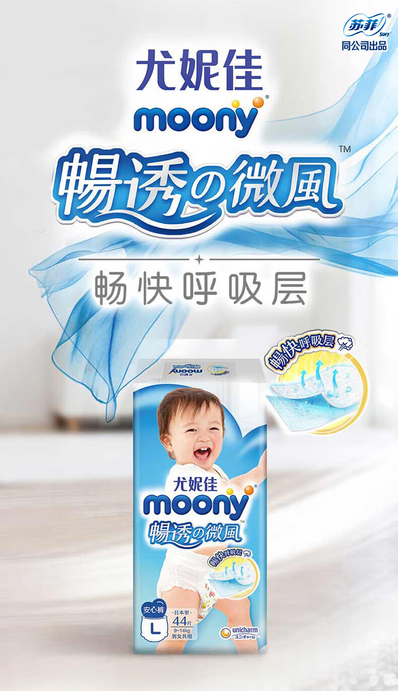 MOONY尤妮佳畅透拉拉裤L44片(9-14kg) 经典之选透气柔软(男女通用)